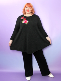 Свободный А-силуэт с удлинённым кроем (96 см) визуально стройнит фигуру и дарит свободу движений. Такая туника для полных женщин больших размеров подойдёт для любого типа фигуры и станет идеальным выбором для дам размера plus size.
