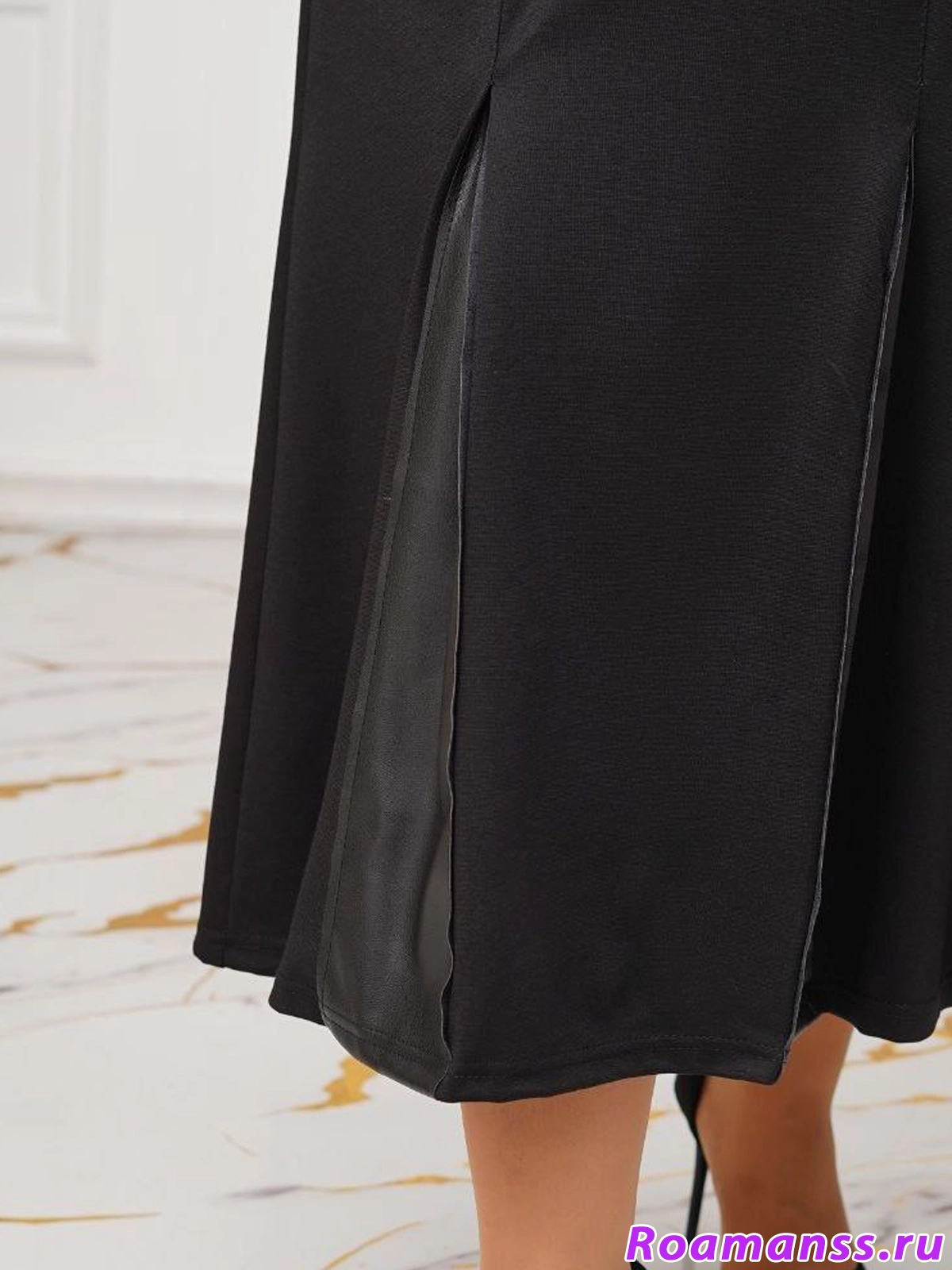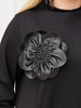 Стильное платье из плотного турецкого трикотажа. Фасон расклешен. Боковые карманы во швах. Украшено вставками из искусственной кожи и цветком. Длина 130см