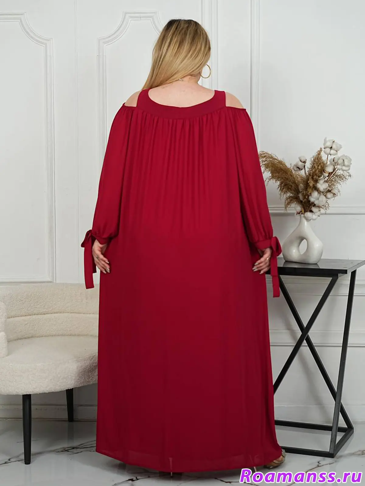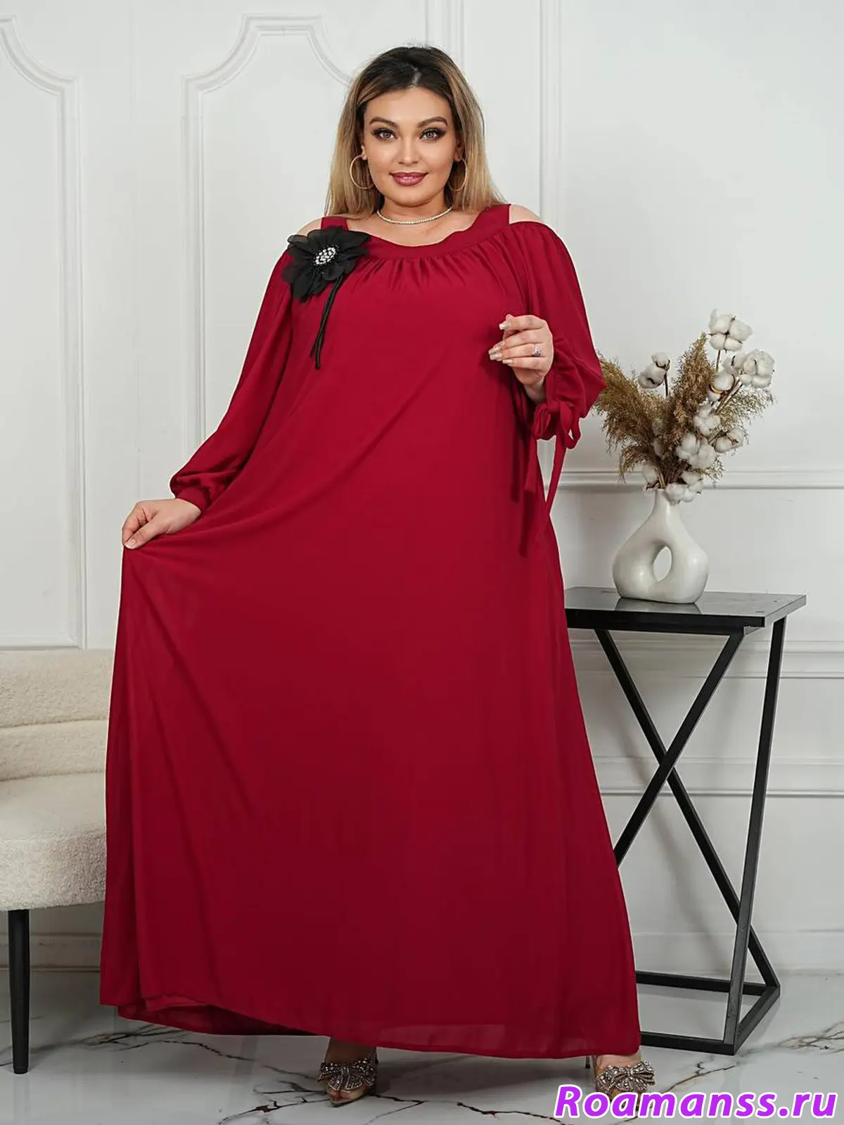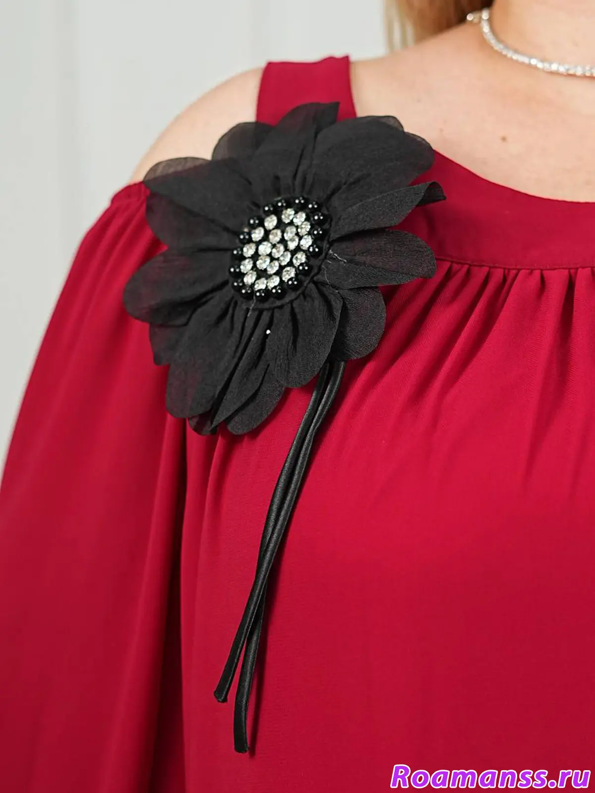 Очаровательное платье Изабель с расклешенным летящим силуэтом! Украшено брошью - цветком со стразами и очаровательными бантиками на рукавах. Это платье станет идеальным выбором для разных случаев! Вырезы на плечах присборены резинкой и придают особый шарм и женственность! Боковые карманы во швах. Вы будите выглядеть потрясающе и чувствовать себя уверенно! Ткань креп шифон, нижнее платье из подкладочного трикотажа. Длина платья 138см.