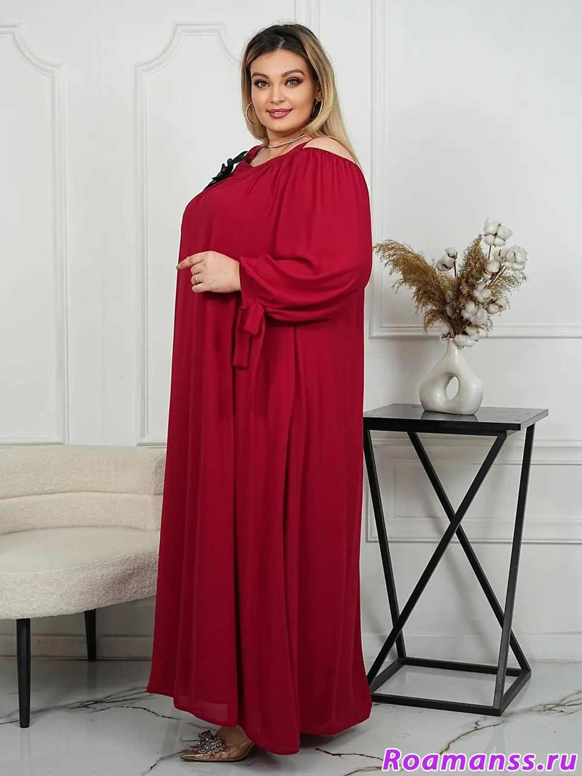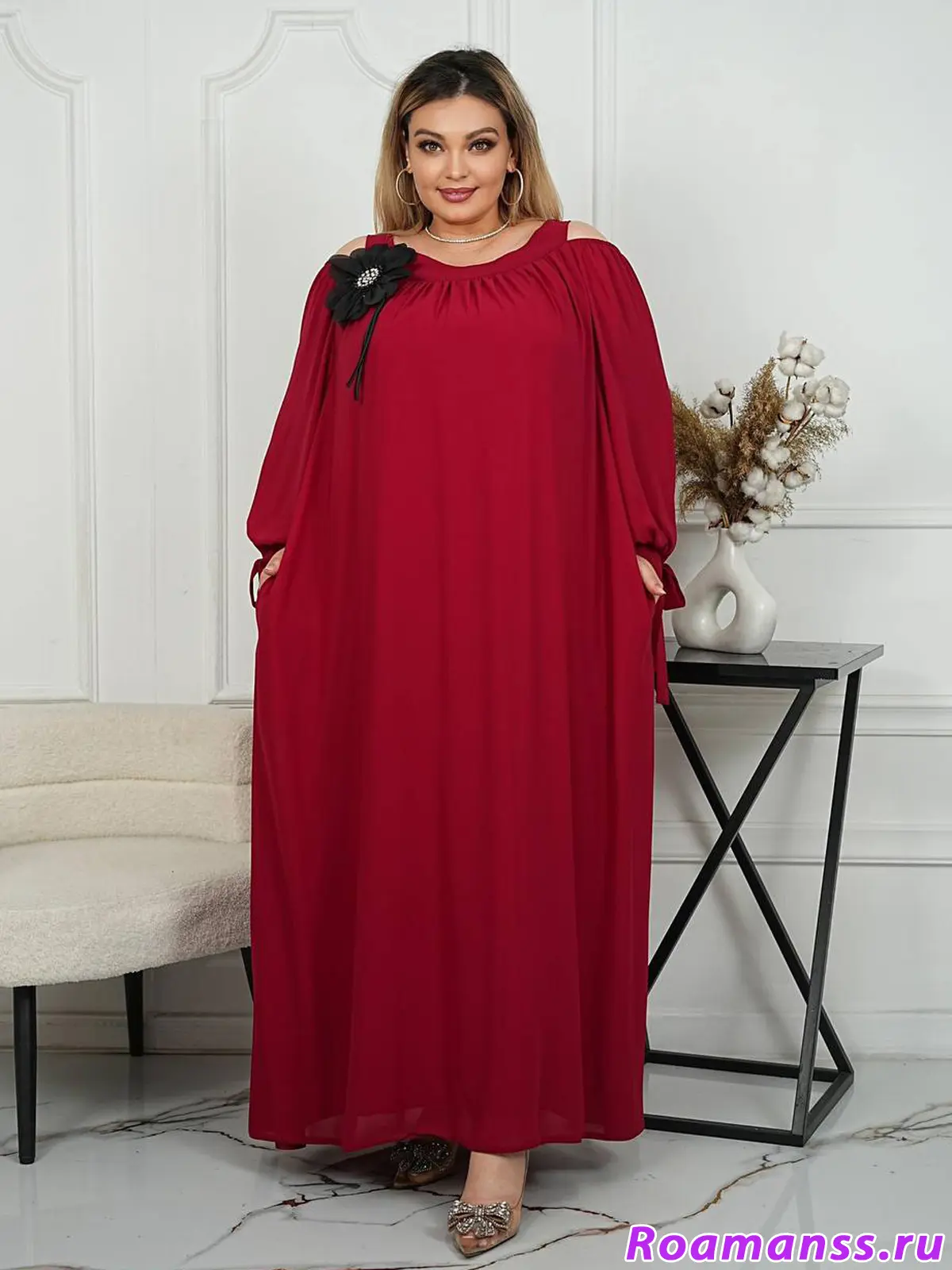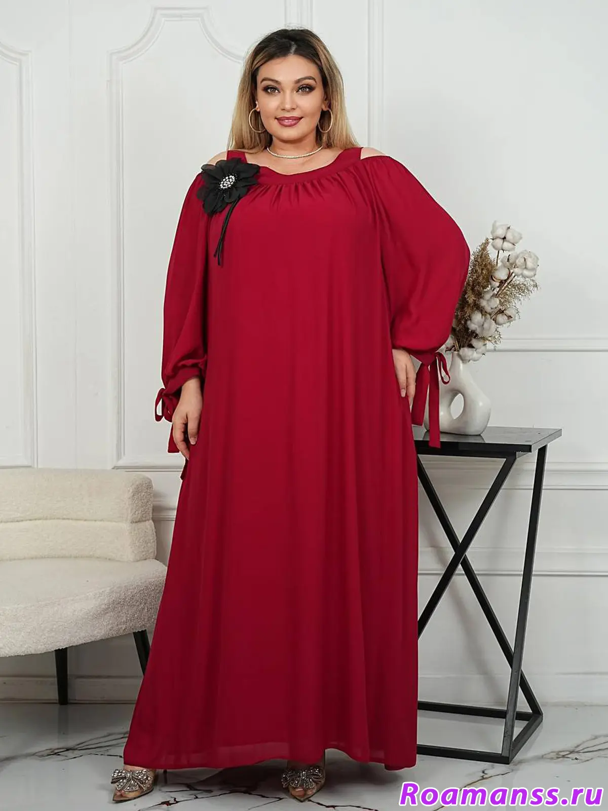 Очаровательное платье Изабель с расклешенным летящим силуэтом! Украшено брошью - цветком со стразами и очаровательными бантиками на рукавах. Это платье станет идеальным выбором для разных случаев! Вырезы на плечах присборены резинкой и придают особый шарм и женственность! Боковые карманы во швах. Вы будите выглядеть потрясающе и чувствовать себя уверенно! Ткань креп шифон, нижнее платье из подкладочного трикотажа. Длина платья 138см.