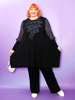 Эта великолепное платье-туника больших размеров воплощает элегантность и женственность! Трикотаж корейское масло дарит мягкость, а воздушные шифоновые рукава-фонарики с изысканным жабо добавляют легкости и изящества вашему образу. Трапециевидный крой и длина от 96 см создают стройный силуэт, тонко подчеркивая достоинства фигуры. Идеальный выбор для торжеств и особых случаев — нарядная туника для полных женщин больших размеров станет центральным элементом вашего гардероба.