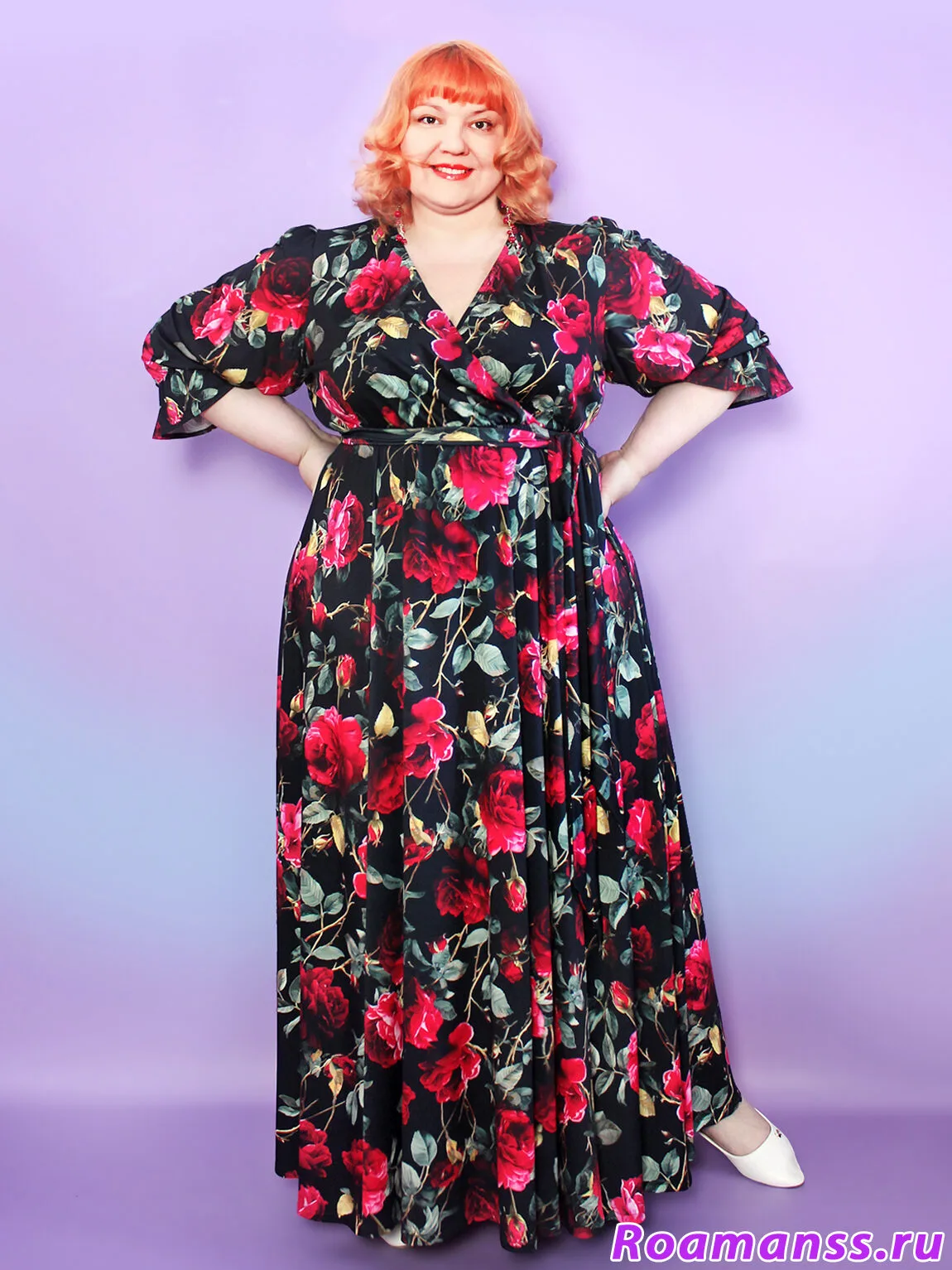 Окунитесь в атмосферу элегантности с этим длинным платьем больших размеров из корейского трикотажа масло. Модель с расклешённой юбкой-шестиклинкой легко подчеркнет талию благодаря эластичной резинке и широкому поясу. Облегающий топ с вырезом-«запах» красиво удлиняет шею, а рукава фонарики с рюшами придают образу особую женственность и шарм. Платье больших размеров праздничное - идеальный выбор для особых случаев, но не менее уместно и в повседневной жизни. Оно визуально стройнит и создаёт безупречный силуэт. Позвольте себе выглядеть великолепно в любое время! Длина 150см